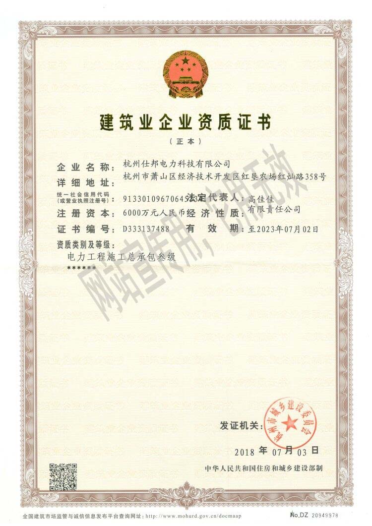 建設業企業資質證書