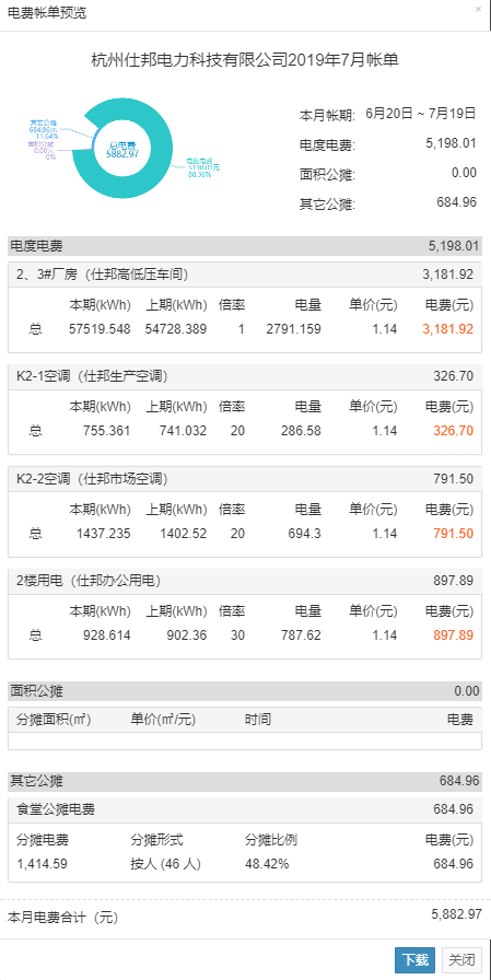 2、系統可(kě)以根據物業管理(lǐ)的要求,利用各種模型計算出相(xiàng)關的電費分(fēn)攤形式,比如(rú)說電梯按照(zhào)租戶樓層進行分(fēn)攤,公共空調的能耗按照(zhào)面積分(fēn)攤,變壓器和線路(lù)損耗按照(zhào)用電量來分(fēn)攤等各種分(fēn)攤方式,而且租戶對分(fēn)攤費用也清晰可(kě)見,一目了然,減少了很多糾紛。